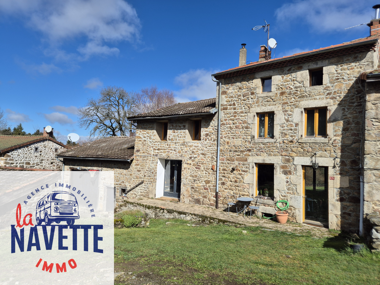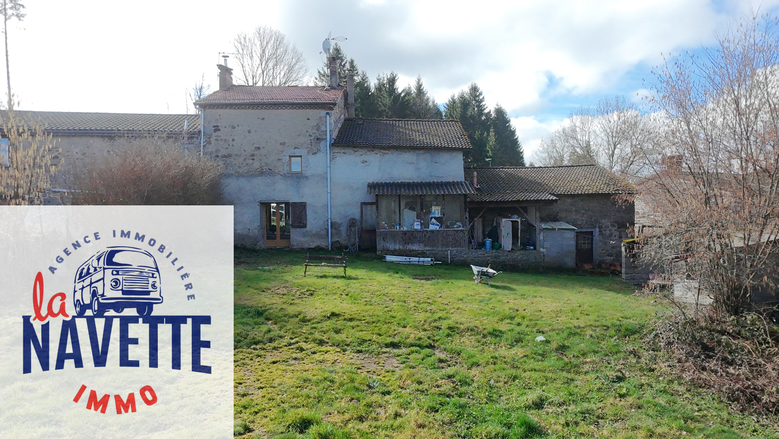 Dans un hameau d'Auzelles, proche de Cunlhat et d'Ambert, La Navette immo vous propose, en exclusivité, u maison en pierre avec grange et 1 hectare de terrain